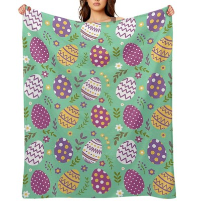 Easter Eggs Spring Throw Blanket Colorful Egg Leaves Super Soft Fuzzy Plush Cozy Flannel Blankets, Easter Decorative Blanket 40x50 inches