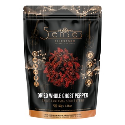 5Senses Dried Whole Ghost Peppers | Bhut Jolokia, Chile Fantasma | Firestorm | 100% Natural, Non-GMO, Fairtrade (1.75oz/50g)