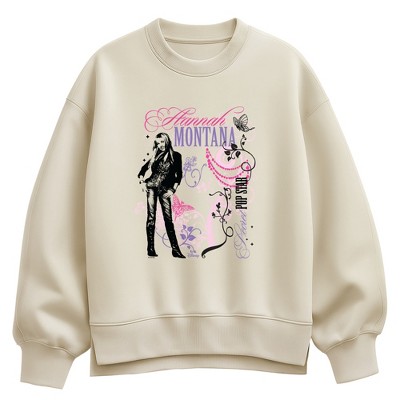 Women's - Hannah Montana - Secret Pop Star Oversized Fleece Crew Sweatshirt