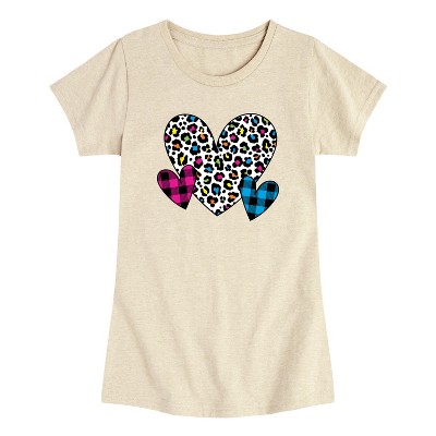 Girls' - Instant Message - Patterned Hearts Fitted Short Sleeve Graphic T-Shirt