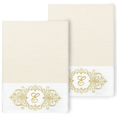 Linum Home Textiles 100% Turkish Cotton MONICA Gold Thread 2PC Embellished Bath Towel Set
