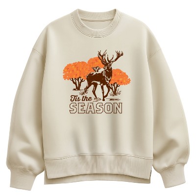 Women's - Instant Message - Tis the Season Fall Deer Oversized Fleece Crew Sweatshirt