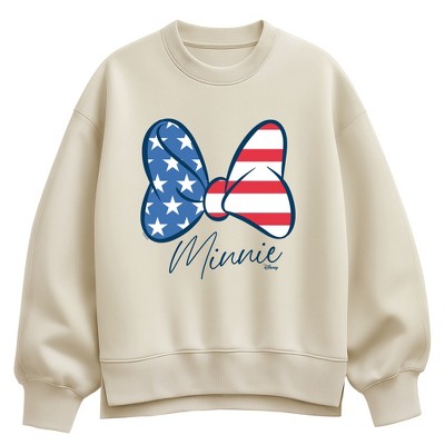 Women's - Disney - Minnie Americana Bow Oversized Fleece Crew Sweatshirt