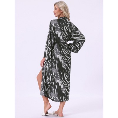 INSPIRE CHIC Women's Satin Leopard Silky Long Sleeves Tie Waist Cover Up Loose Wedding Bridesmaid Bridal Party Long Bathrobes