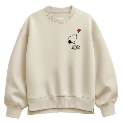 Women's - Peanuts - Mini Valentine Snoopy Heart Oversized Fleece Crew Sweatshirt