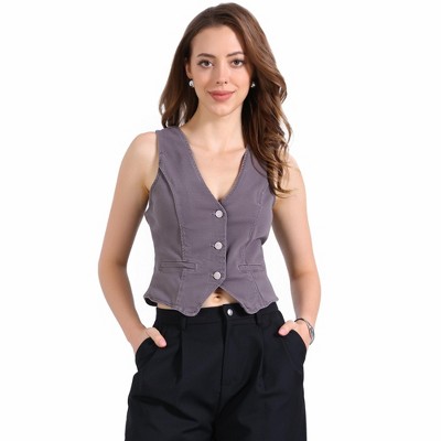 INSPIRE CHIC Women's Denim Sleeveless V Neck Button Down Cropped Jean Waistcoat