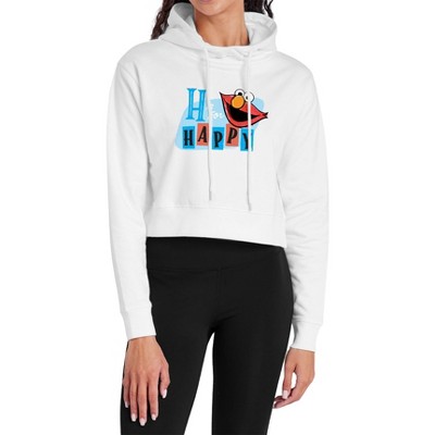 Women's Sesame Street Street Beats H Is For Happy With Elmo Cropped Hoodie Pullover Sweatshirt