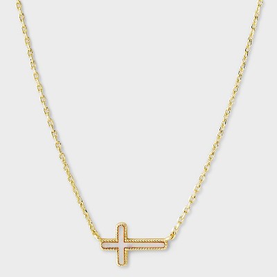 14k Gold Dipped Mother Of Pearl Inlay Sideways Cross Necklace - Gold