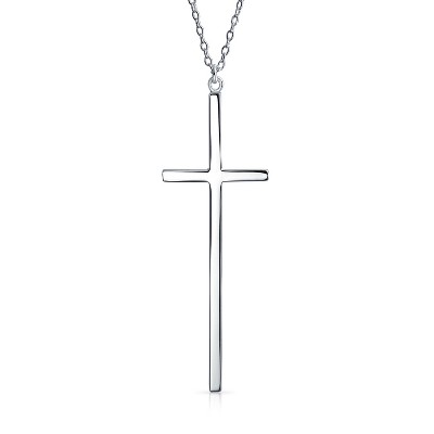 Bling Jewelry Minimalist Large Tube Simple Religious Cross Pendant Necklace .925 Sterling Silver