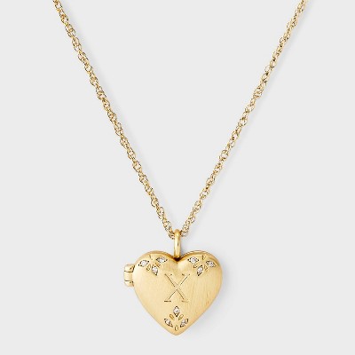 Brass Letter "X" Heart Locket with Initial Pendant Necklace - A New Day™ Gold