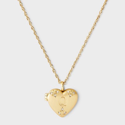 Brass Letter "Q" Heart Locket with Initial Pendant Necklace - A New Day™ Gold