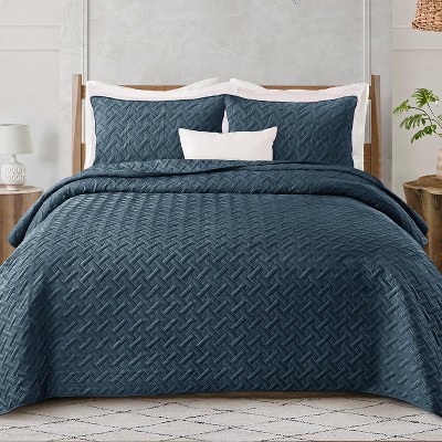 Queen Full Size 3-Piece Soft Quilt Set, Lightweight Navy Bedspreads Coverlets, Weave Pattern, All Season Bedding Set