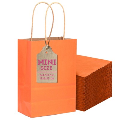 Narwey 24 Pcs Orange Mini Paper Gift Bags with Handles 6"x4.5"x2.5"