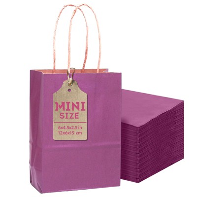 Narwey 24 Pcs Purple Mini Paper Gift Bags 6"x4.5"x2.5" with Handles