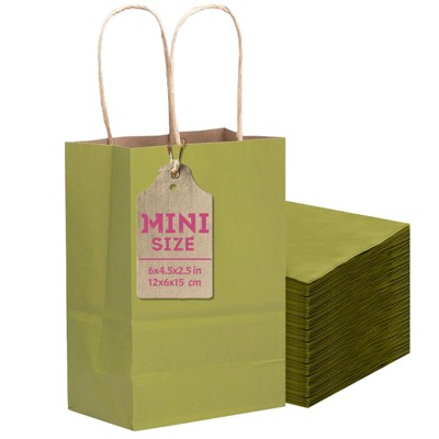 Narwey 24 Pcs Forest Green Mini Paper Gift Bags with Handles