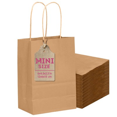 Narwey 25 Pcs Brown Mini Gift Bags with Handles 6"x4.5"x2.5"