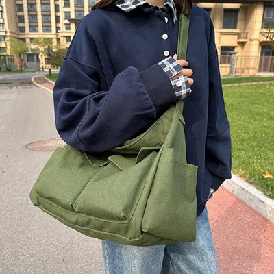 Narwey Canvas Messenger Bag Large Crossbody Bag with Multiple Pockets Canvas Shoulder Tote Bag for Women and Men (Army Green)