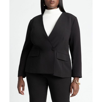 ELOQUII The 365 Semi Stretch Double Breast Collarless Blazer