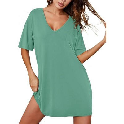 Ekouaer Womens Nightgowns Short Sleeve Sleepshirt V Neck Top Shirt Dress Soft Nightshirts Loose Loungewear