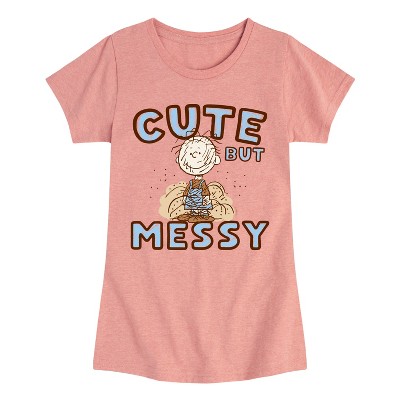 Girls' - Peanuts - Cute But Messy Fitted Short Sleeve Graphic T-Shirt