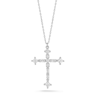 Sphera Milano Sterling Silver Multishape CZ Cross Pendant Necklace