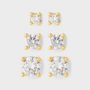 14K Gold Plated Stud and Hoop Earring Set 3pc - A New Day™ Gold: Brass, Sterling Silver, Nickel-Free