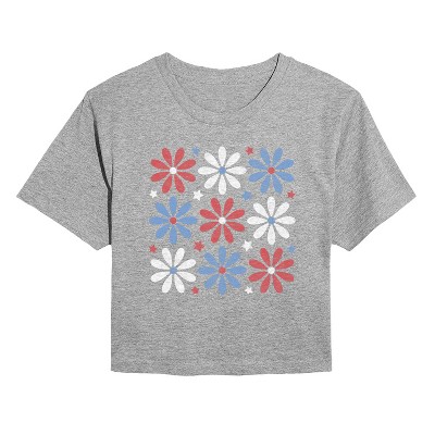 Women's - Instant Message - Red White Blue Daisies Cropped Graphic T-Shirt