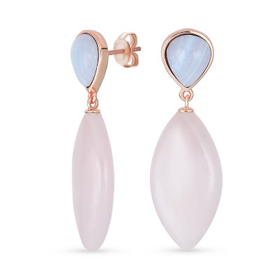 Guili Sterling Silver 18K Rose Gold Plated Dangle Earrings with Colored Cubic Zirconia Stones in Oval Shape, A Stunning Piece for Any Occasion