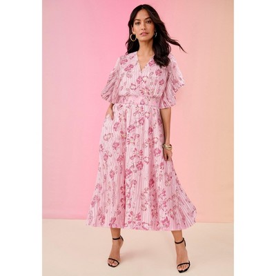 Roaman's Plus Size Flutter Sleeve V-Neck Fit And Flare Bi-Stretch Maxi Dress
