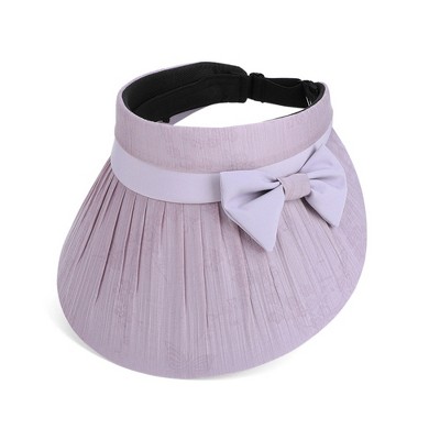 Anna-Kaci Women Wide Brim Visor Hat Pleated Design Adjustable Back Strap Sun Visor with Bow Detail