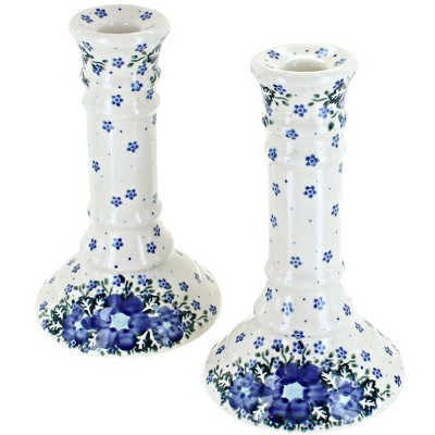 Blue Rose Polish Pottery 293 Vena Candlestick Pair