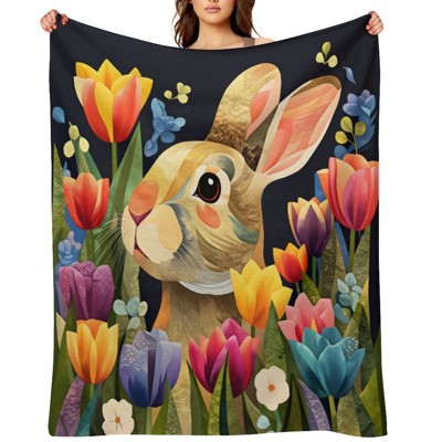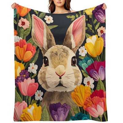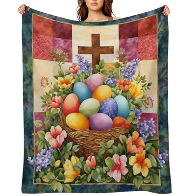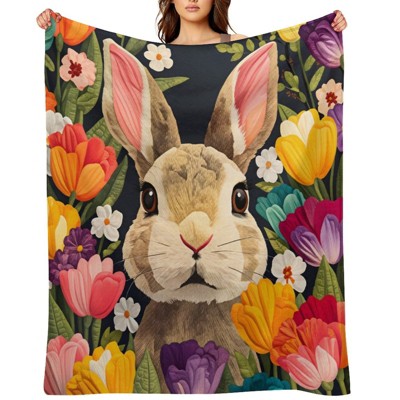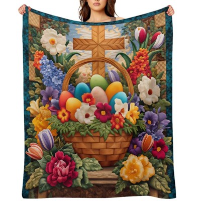 Easter Blanket, Eggs Easter Decorations for Home Throw Blankets, Cute Bunny Blanket Farmhouse Bedding Sofa Decor 50x60 inches