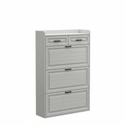 Narrow Freestanding Shoe Cabinet with 3 Flip Compartments and 2 Drawers, Space-Saving Entryway Organizer with Closed Storage