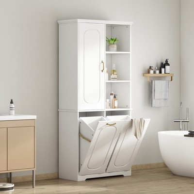 68" Freestanding Tall Bathroom Storage Cabinet with 2 Tilt-Out Laundry Hampers, Adjustable Shelves, Soft-Close Door Cabinet - ModernLuxe