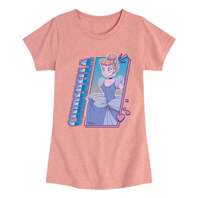 Girls' - Disney Princess - Cinderella Kawaii Anime with Hearts Fitted Short Sleeve Graphic T-Shirt