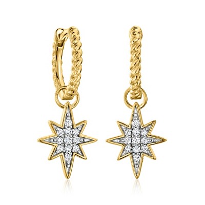 Ross-Simons 18kt Gold Over Sterling Hoop Earrings With Removable .20 ct. t.w. Diamond Star Drops