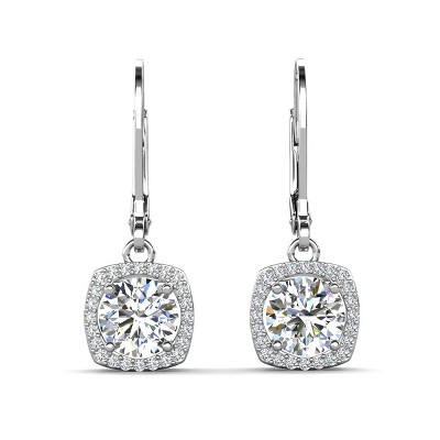 Cate & Chloe Freya 18K White Gold Plated Drop Earrings with Simulated Diamond Crystals for Women