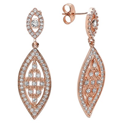 Steeltime Ladies 18k rose gold plated brass simulated diamond evil eye oval drop earrings