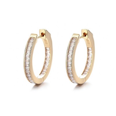 14K Gold Hoop Earring with in and out Emerald-Cut Simulated Diamonds