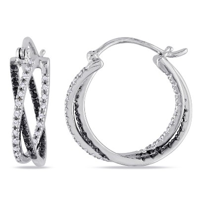 EVERLY JEWELRY | Sterling Silver 1/4 CT Black & White Diamond TW Hoop Earrings Black Rhodium Plated