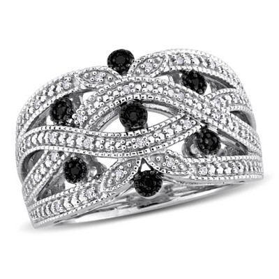 EVERLY JEWELRY | Sterling Silver 1/10 CT TW Black and White Diamond Criss-Cross Cocktail Ring