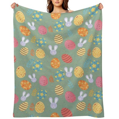 Cute Bunny Throw Blanket,Soft,Lightweight Flannel,Adorable White Rabbit and Colorful Flower Floral Blankets - Gifts for Kids Adult 40x50 inches