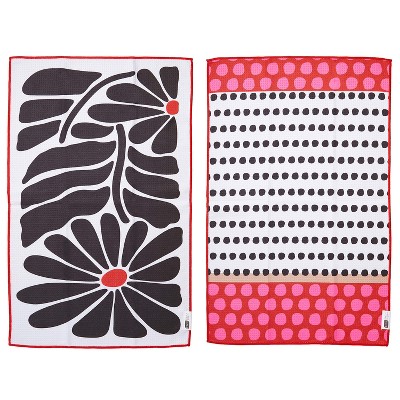RITZ Waffle Microfiber Kitchen Towel, 2 Pack Set – Jumbo Flowers and Dots – Bold Floral & Modern Polka Dot Absorbent Dish Cloths 18" x 28" – 80%