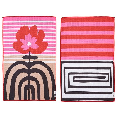 RITZ Waffle Microfiber Kitchen Towel, 2 Pack Set – Maze and Rainbow – Abstract Floral & Geometric Stripe Absorbent Dish Cloths 18" x 28" – 80%