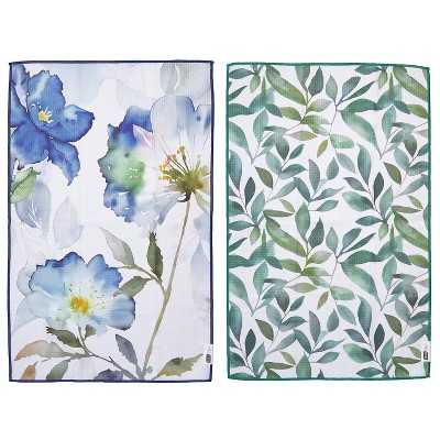 RITZ Waffle Microfiber Kitchen Towel, 2-Pack Set – Flower Trio and Leaf – Watercolor Floral & Botanical Leaf Absorbent Dish Cloths 18" x 28" – 80%