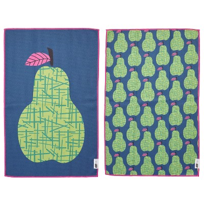 RITZ Waffle Microfiber Kitchen Towel, 2-Pack Set – Pears – Modern Fruit Motif & Graphic Pattern Absorbent Dish Cloths 18" x 28" – 80% Recycled