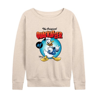 Women's - Disney - Quackateer Lightweight French Terry Wide Neck Long Sleeve Graphic Shirt