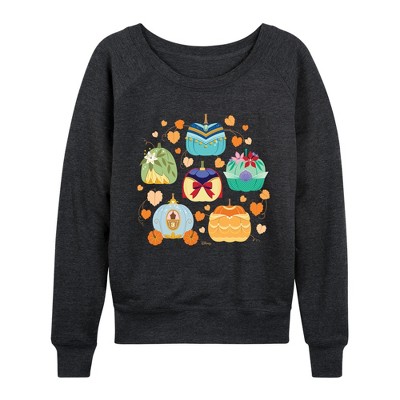 Women's - Disney - Princess Pumpkin Grid Lightweight French Terry Wide Neck Long Sleeve Graphic Shirt