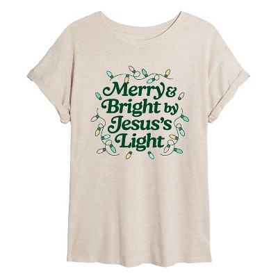 Women's - Instant Message - Merry & Bright by Jesus's Lights Oversized Graphic T-Shirt