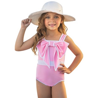 Blushing Summer Statement Bow Pink One Piece Swimsuit Mia Belle Girls